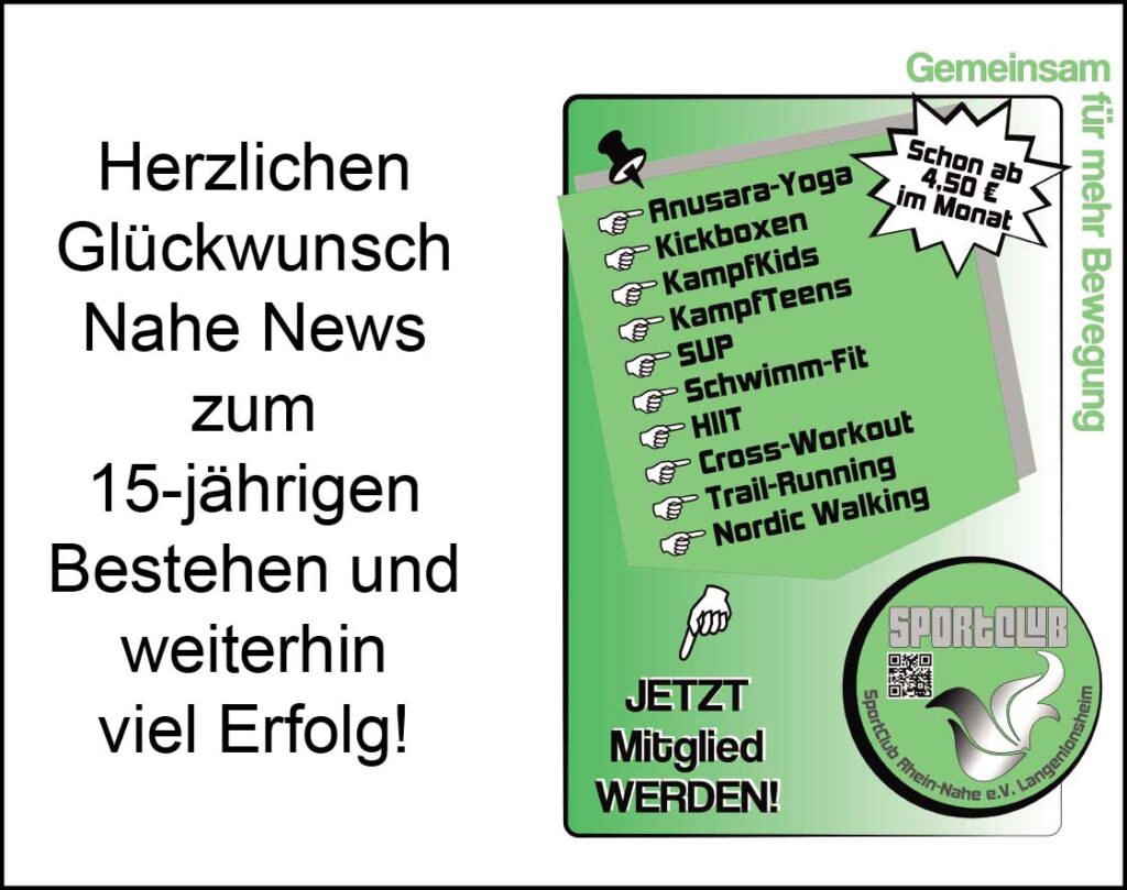 Mein besonderer Dank gilt unseren treuen Lesern, unseren Partnern, Anzeigenkunden sowie allen, die uns mit Hinweisen, Fotos und Themen unterstützen. Ohne diese Verbundenheit zur Region wären 15 Jahre Nahe News nicht möglich gewesen.