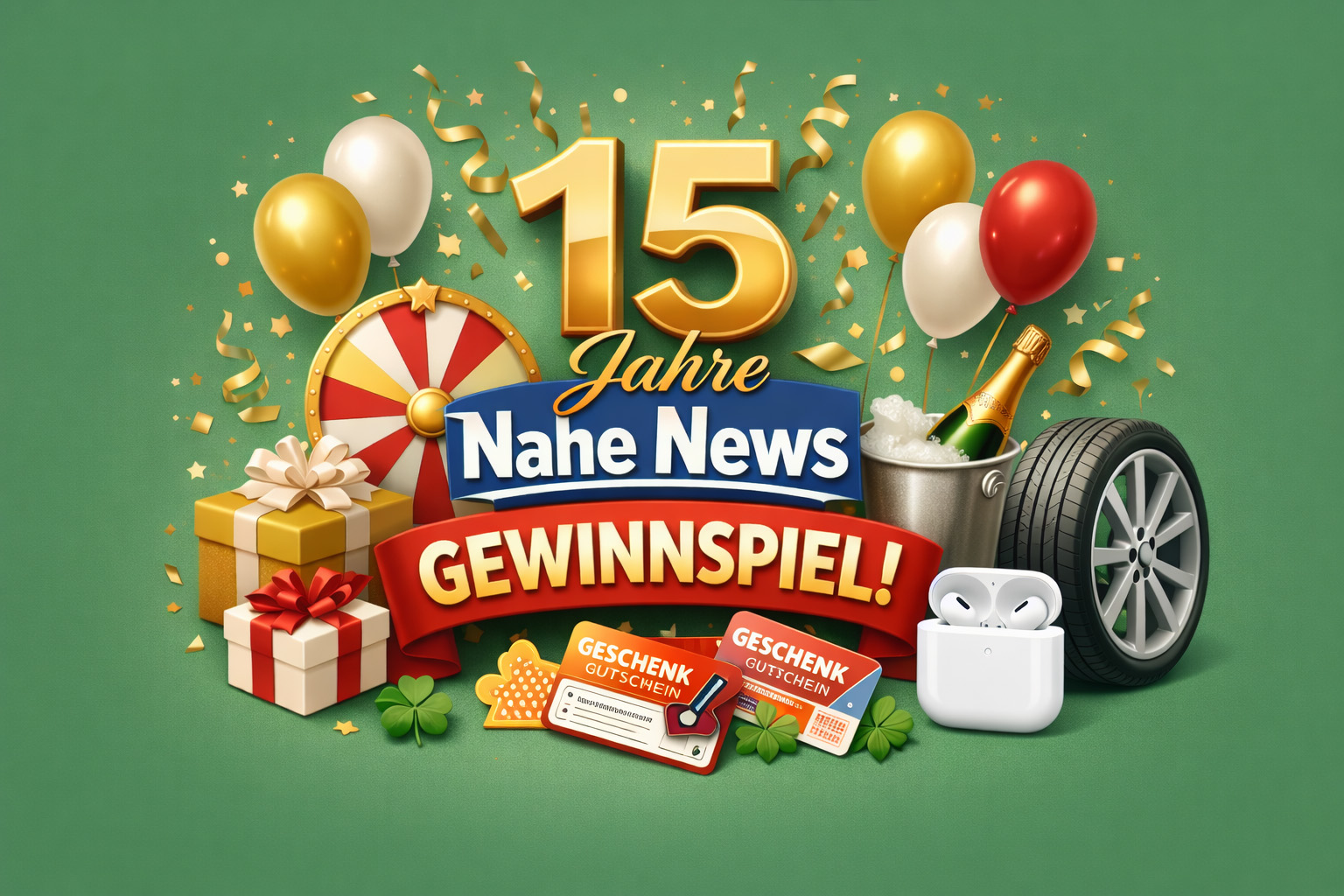 Seit 15 Jahren informiert Nahe News zuverlässig, aktuell und nah am Geschehen in unserer Region. Dieses besondere Jubiläum möchten wir gemeinsam mit Ihnen feiern – mit einem großen Gewinnspiel rund um Nahe News. Testen Sie Ihr Wissen und sichern Sie sich mit etwas Glück einen der attraktiven Preise!