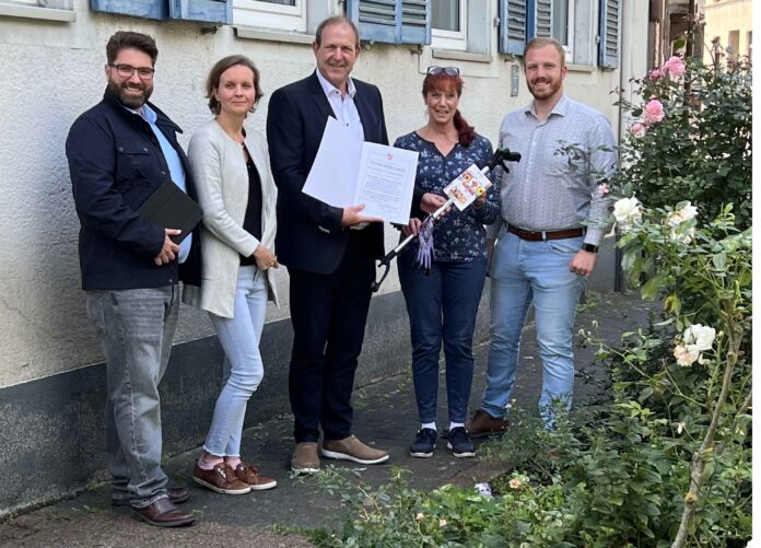 Dafür überreichte ihr Oberbürgermeister Frank Frühauf jetzt eine Urkunde und dankte ihr dafür, dass sie sich ehrenamtlich um die Grünfläche kümmert. Es sei erfreulich, wenn sich Bürgerinnen und Bürger dafür einsetzen, ihr Wohnumfeld schön zu gestalten, erklärte der Oberbürgermeister. Dies sei auch ein positives Beispiel für andere. Frühauf wies darauf hin, dass es gerade im Stadtquartier Wasenstraße die Möglichkeit gibt, über den Verfügungsfonds Geld für eigene kleine Projekte, unter anderem für Pflanzaktionen, zu erhalten. Der Oberbürgermeister, wie auch die Stadtplanung würden sich sehr darüber freuen, wenn sich Nachahmer finden würden, die in ihrem Wohnumfeld weitere Grünflächen verschönern möchten. Mehr Informationen dazu gibt es in einem Video auf der Homepage unter www.idar-oberstein.de/sozialestadt oder beim Quartiersmanagement unter Mail qm.wasenstrasse@stadtberatung.info.