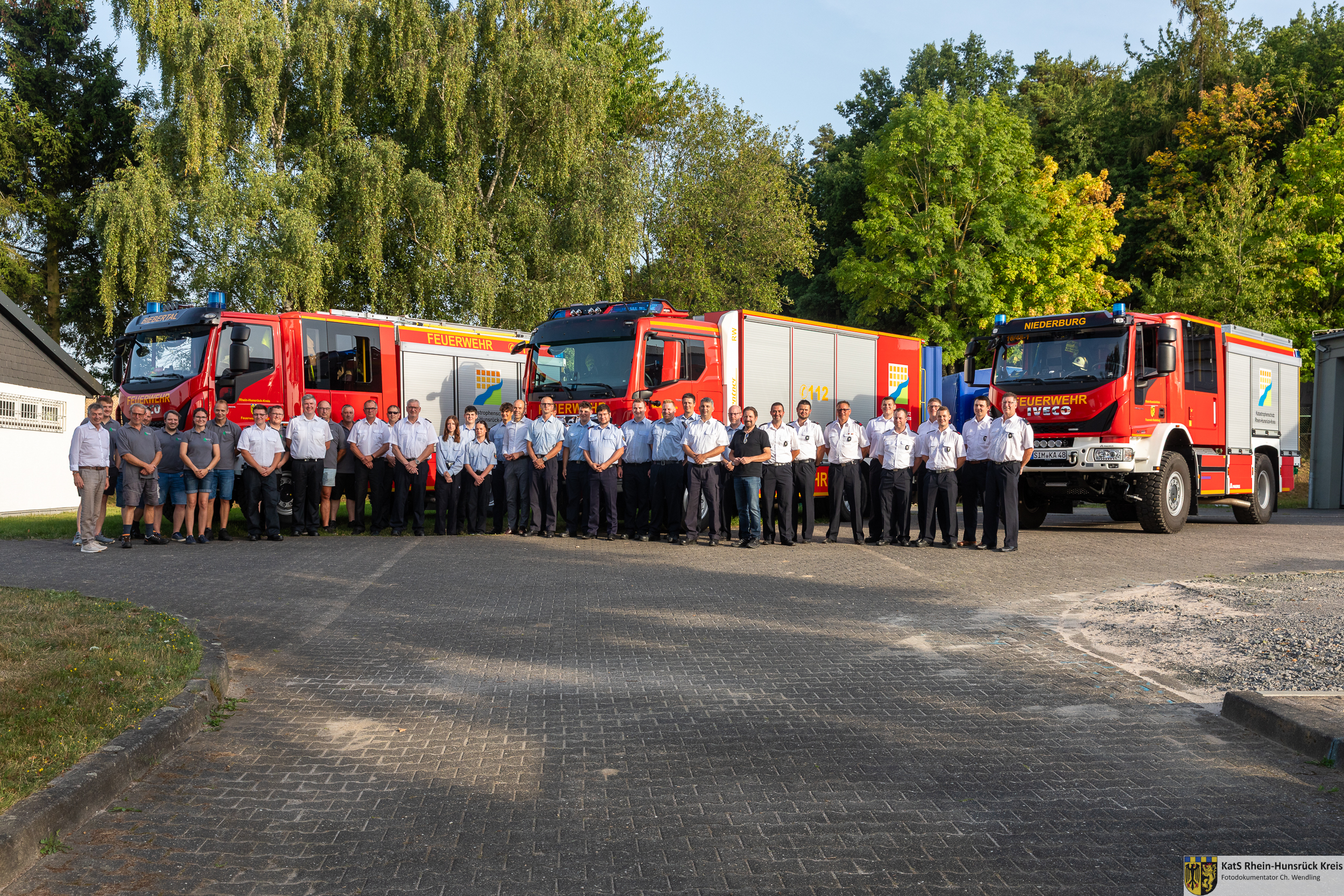 Aufgrund der Erfahrungen aus vergangenen Großschadenslagen, der steigenden Anforderungen durch den Klimawandel und der veränderten Sicherheitslage in Europa besteht ein erhöhter Bedarf an zusätzlichen Großfahrzeugen für den überörtlichen Brandschutz, die überörtliche allgemeine Hilfe sowie den Katastrophenschutz im Kreisgebiet. Um die Aufgaben auch künftig wirksam erfüllen zu können und die Gefahrenabwehr zu stärken, wurden zwei Löschgruppenfahrzeuge Katastrophenschutz (LF 20 KatS) sowie ein Rüstwagen (RW) beschafft, die offiziell durch Landrat Volker Boch und Brand- und Katastrophenschutzinspekteur Stefan Bohnenberger gemeinsam mit den Bürgermeistern der Verbandsgemeinden Hunsrück-Mittelrhein, Herrn Peter Unkel, und Simmern-Rheinböllen, Herrn Michael Boos, sowie den Wehrleitungen der jeweiligen Einheiten offiziell in Dienst gestellt wurden.