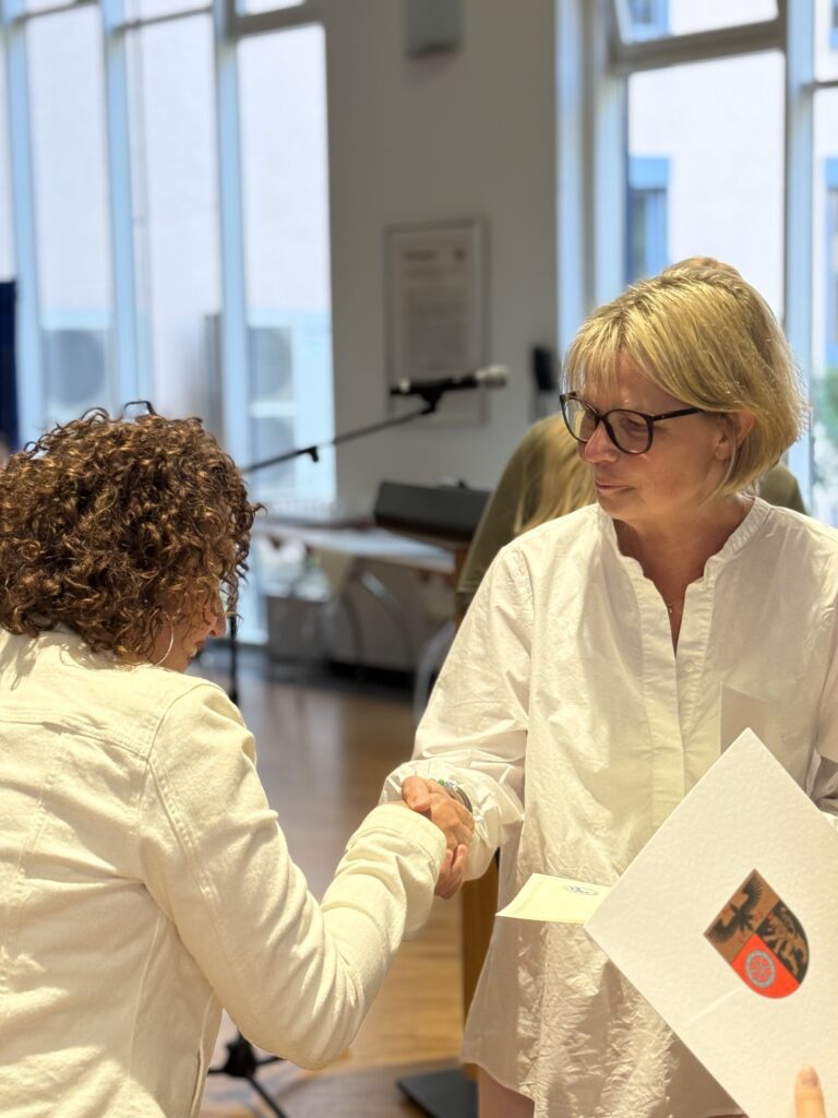 Zweite Kreisbeigeordnete Almut Schultheiß-Lehn überreicht die Urkunden – Foto: Kreisverwaltung Mainz-Bingen / Nina Becker