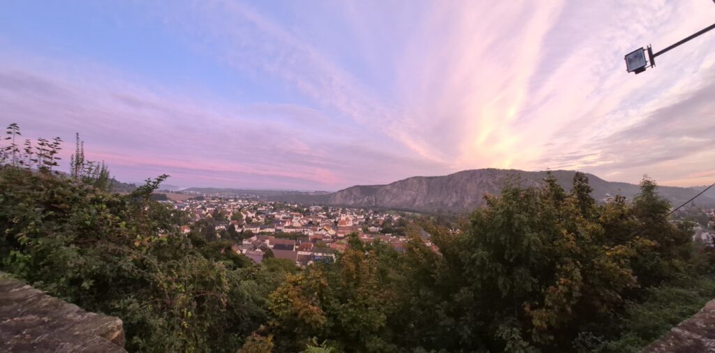 Ein weiteres beeindruckendes Naturschauspiel hielt Günter Schneider aus Roxheim fest. Sein Foto, aufgenommen von der Ebernburg aus, zeigt den Blick ins Tal kurz nach Sonnenuntergang. Der Himmel erstrahlt in zarten Rosé- und Lilatönen, durchzogen von malerischen Wolkenstreifen, die eine friedliche Abendstimmung über die Häuser von Ebernburg und die steilste Erhebung nördlich der Alpen, den Rotenfels, legen. Das warme Licht taucht die Szenerie in eine sanfte, fast schon mystische Atmosphäre und beweist einmal mehr die Schönheit der Nahe-Region in den Abendstunden.