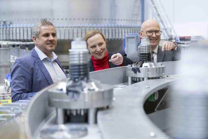Die rheinland-pfälzische Arbeitsministerin Dörte Schall folgte der KHS-Einladung, um diese Aufgaben persönlich vor Ort zu diskutieren. So nahm sich die Ministerin nach der Begrüßung Zeit für einen ausführlichen Werksrundgang mit intensiven Gesprächen. Dabei betonte sie, dass die Bedeutung demokratischer Prinzipien weit über die Politik hinaus bis in den betrieblichen Alltag reiche. „Sozialpartnerschaft ist gelebte Demokratie im Betrieb. In Zeiten großer Herausforderungen und Unsicherheiten ist Mitbestimmung essenziell für