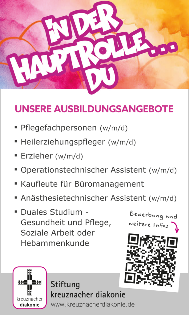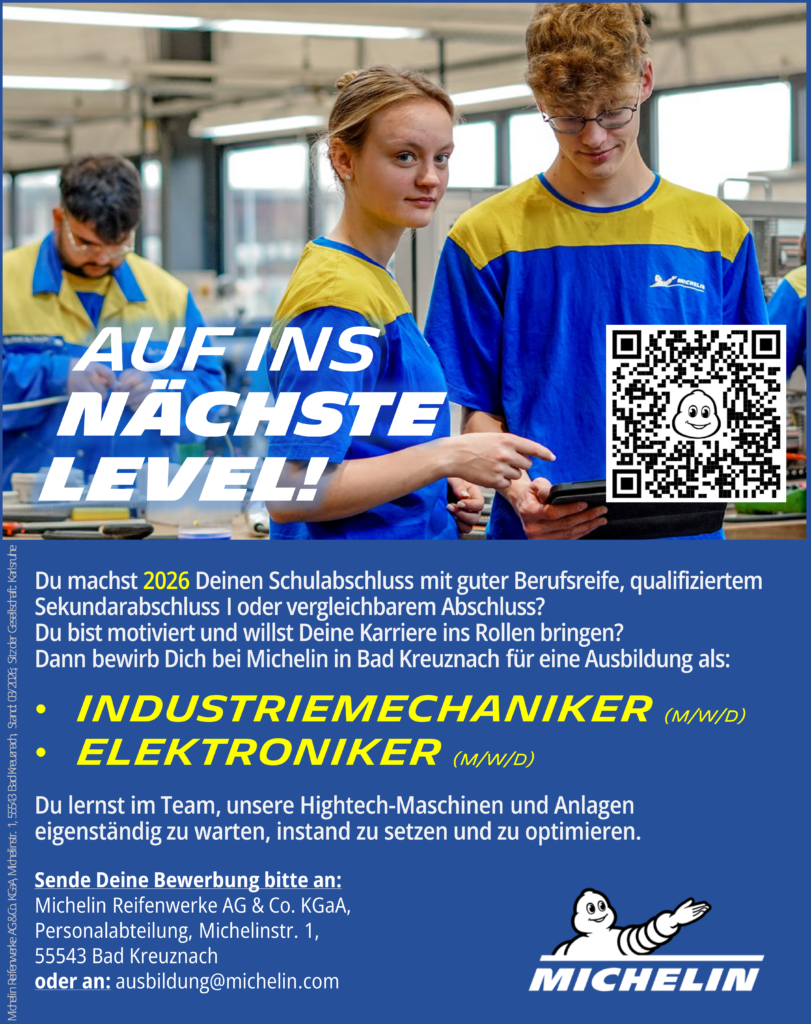 Ich lade alle Schülerinnen und Schüler, Eltern, Lehrer, Berufswahlbegleiter und die interessierte Öffentlichkeit – auch im Namen aller Ausstellerinnen und Aussteller – sehr herzlich zum Besuch der diesjährigen Ausbildungsbörse am Samstag, 18. April, von 9 bis 13 Uhr in Bad Kreuznach ein.