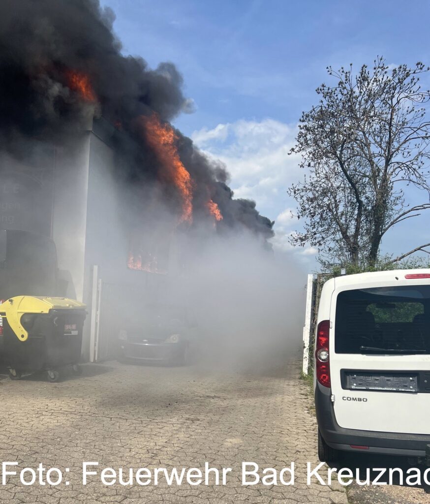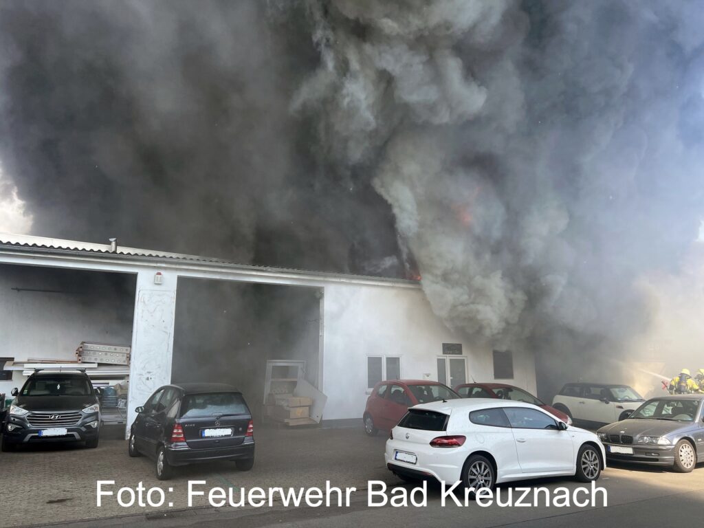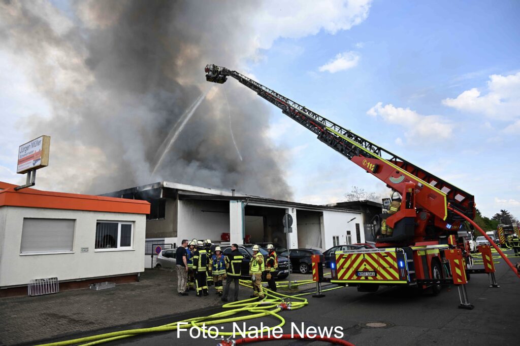 BAD KREUZNACH. Am Samstag, 18. April, ist es gegen 12:30 Uhr in der Badenheimer Straße zu einem verheerenden Brand in einer Autowerkstatt gekommen (Nahe News berichtete). Die Feuerwehr war mit einem Großaufgebot im Einsatz und konnte ein Übergreifen der Flammen auf benachbarte Gebäude verhindern.