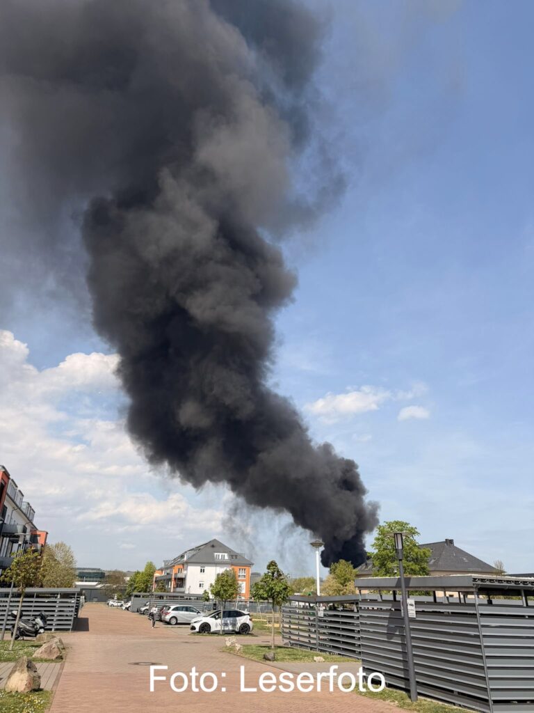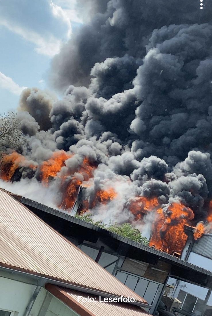 Schon auf der Anfahrt war eine massive schwarze Rauchentwicklung sichtbar, die auf ein ausgedehntes Feuer hindeutete. Vor Ort standen auf der rechten Hallenseite mehrere Fahrzeuge eines Autohandels in Vollbrand. Die Flammen schlugen durch das Dach und aus den Fenstern der Halle. Personen befanden sich zu diesem Zeitpunkt glücklicherweise nicht mehr im Gebäude.